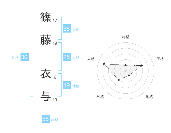 篠藤 衣与さんの総格は55画の1点!