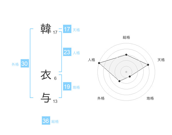 韓 衣与さんの天格は17画の4点!