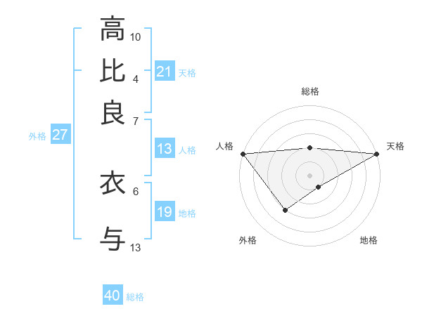 高比良 衣与さんの天格は21画の5点!