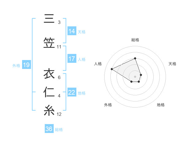 三笠 衣仁糸さんを姓名の画数から五運を鑑定