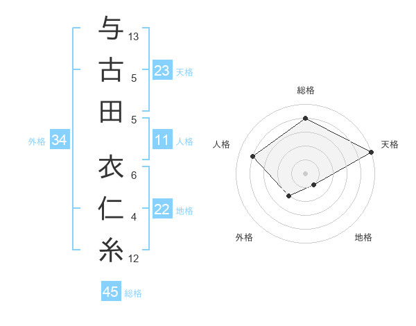 与古田 衣仁糸さんの総格は45画の4点!