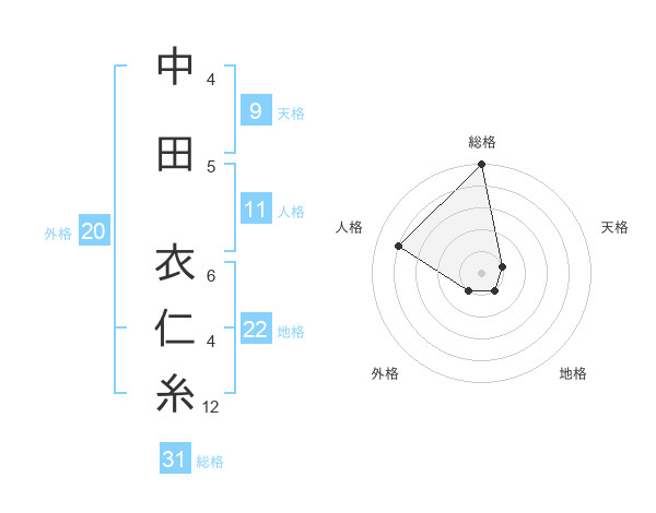 中田 衣仁糸さんを姓名の画数から五運を鑑定