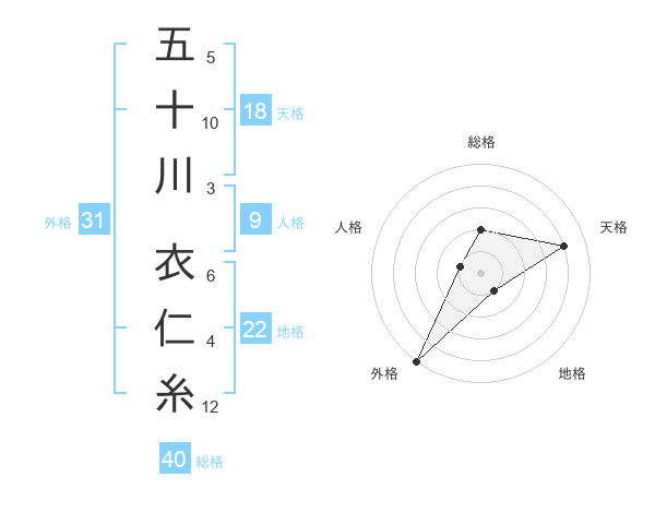 五十川 衣仁糸さんの総格は40画の2点!
