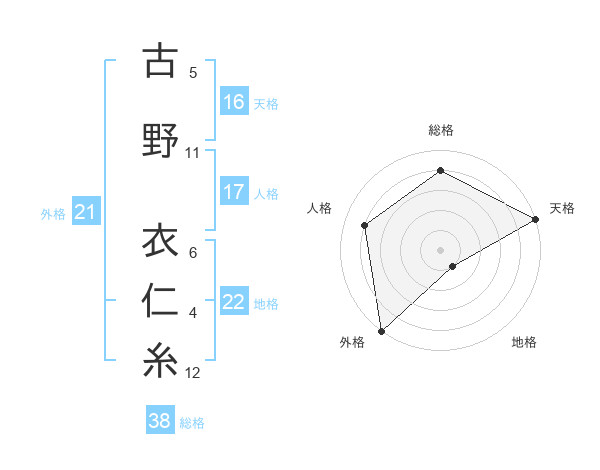 古野 衣仁糸さんを姓名の画数から五運を鑑定