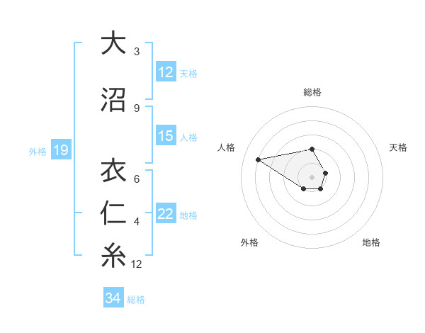 大沼 衣仁糸さんを姓名の画数から五運を鑑定