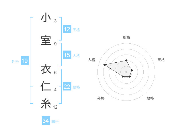 小室 衣仁糸さんの総格は34画の2点