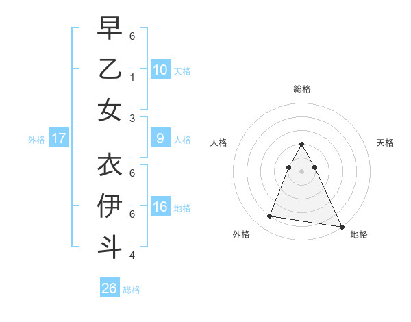 早乙女 衣伊斗さんの総格は26画の2点!