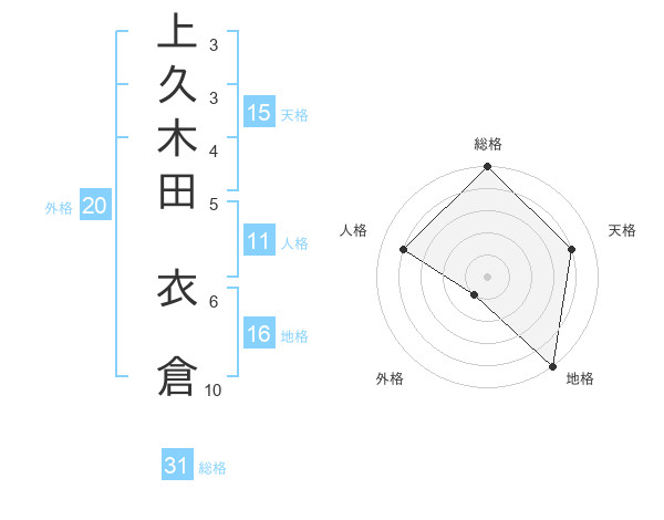 上久木田 衣倉さんを姓名の画数から五運を鑑定