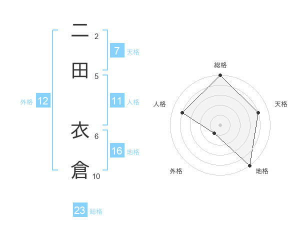 二田 衣倉さんを姓名の画数から五運を鑑定