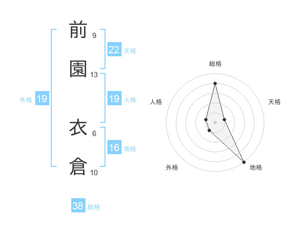 前園 衣倉さんを姓名の画数から五運を鑑定