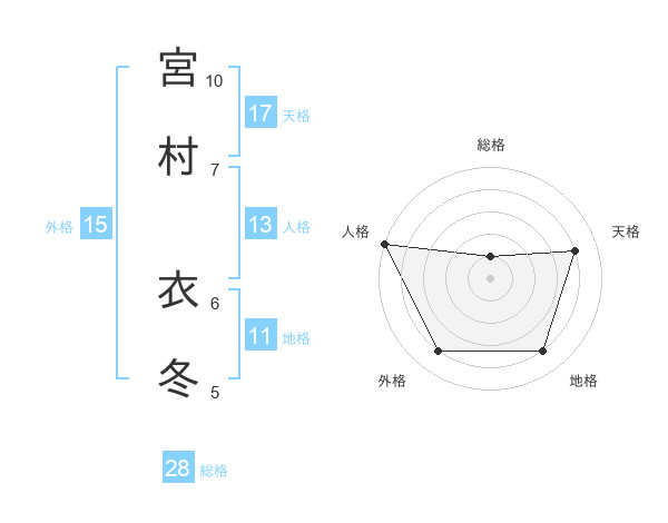 宮村 衣冬さんの総格は28画の1点!