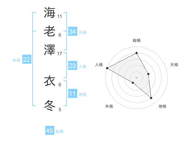 海老澤 衣冬さんの総格は45画の4点!