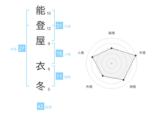 能登屋 衣冬さんの総格は42画の3点!