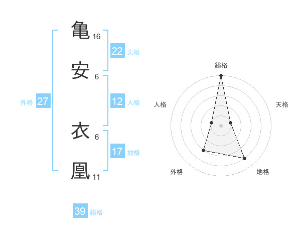 亀安 衣凰さんを姓名の画数から五運を鑑定