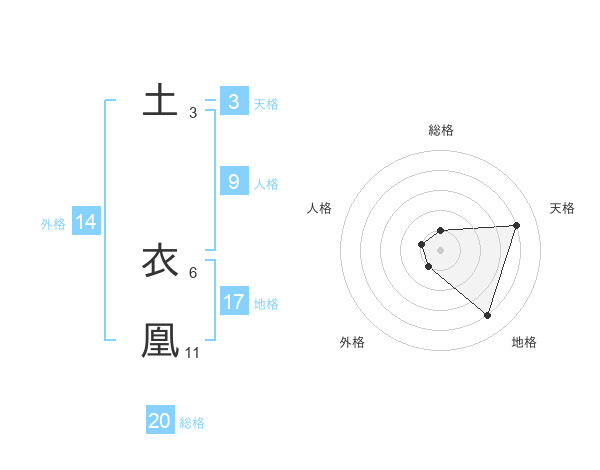 土 衣凰さんの総格は20画の1点!