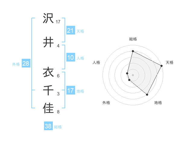 沢井 衣千佳さんの総格は38画の4点!