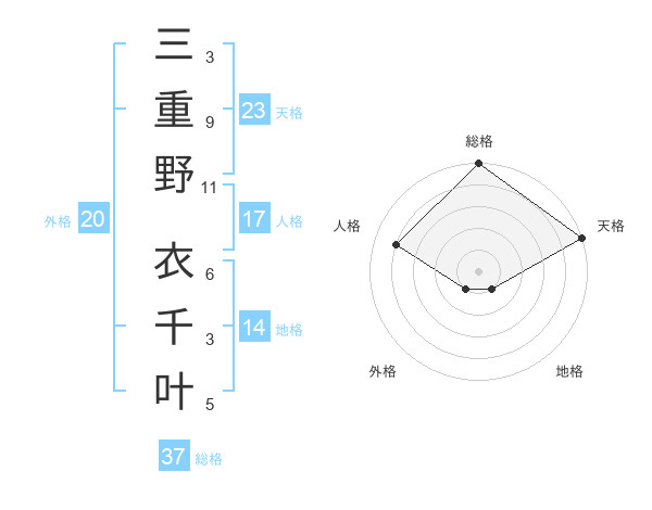 三重野 衣千叶さんを姓名の画数から五運を鑑定