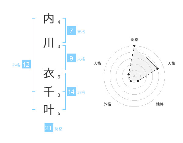 内川 衣千叶さんを姓名の画数から五運を鑑定