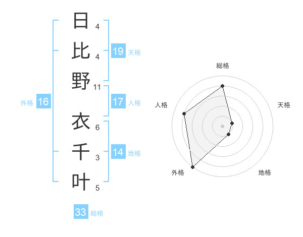 日比野 衣千叶さんを姓名の画数から五運を鑑定
