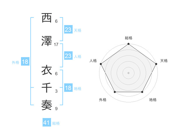 西澤 衣千奏さんを姓名の画数から五運を鑑定