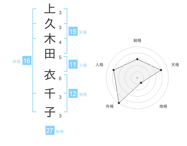 上久木田 衣千子さんを姓名の画数から五運を鑑定