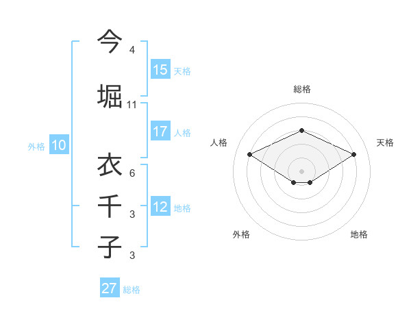 今堀 衣千子さんを姓名の画数から五運を鑑定