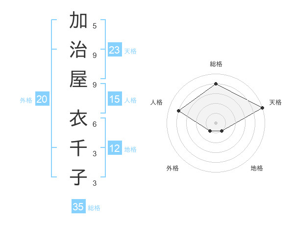 加治屋 衣千子さんの天格は23画の5点!
