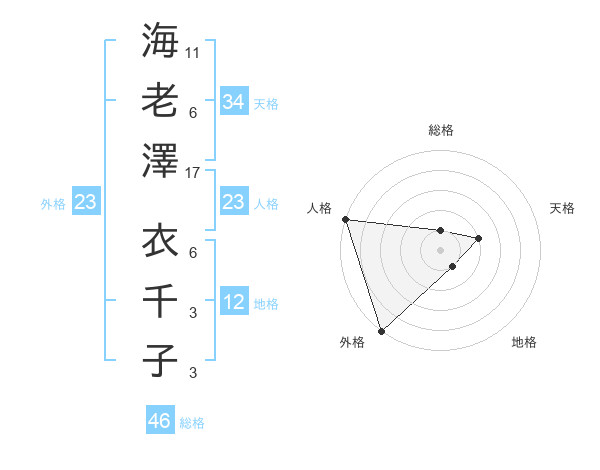 海老澤 衣千子さんを姓名の画数から五運を鑑定