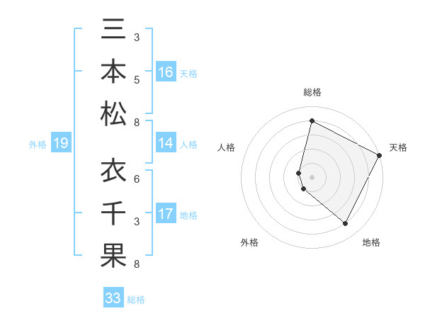 三本松 衣千果さんの総格は33画の4点!