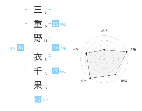 三重野 衣千果さんを姓名の画数から五運を鑑定