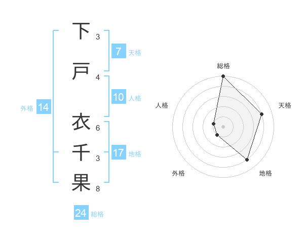 下戸 衣千果さんを姓名の画数から五運を鑑定