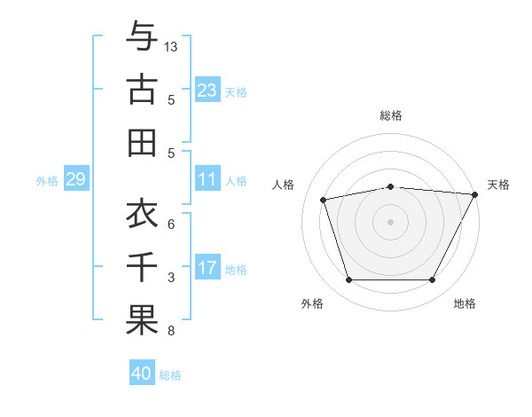 与古田 衣千果さんの天格は23画の5点!