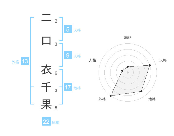 二口 衣千果さんを姓名の画数から五運を鑑定