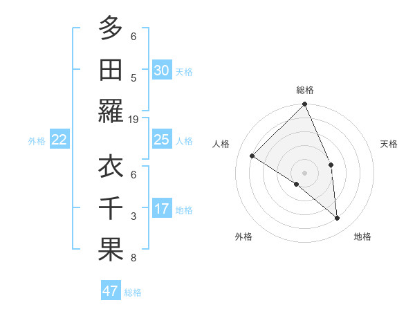 多田羅 衣千果さんを姓名の画数から五運を鑑定