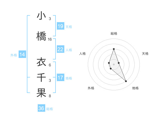 小橋 衣千果さんを姓名の画数から五運を鑑定