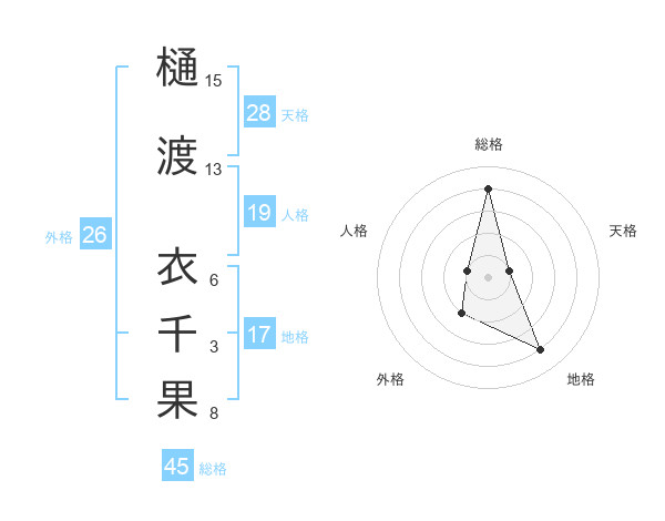 樋渡 衣千果さんを姓名の画数から五運を鑑定