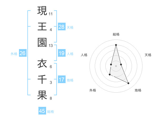 現王園 衣千果さんを姓名の画数から五運を鑑定