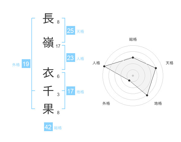 長嶺 衣千果さんを姓名の画数から五運を鑑定