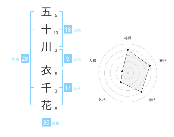 五十川 衣千花さんを姓名の画数から五運を鑑定