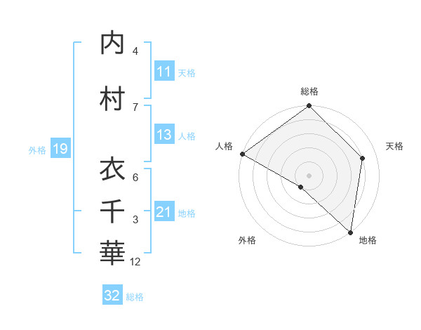 内村 衣千華さんを姓名の画数から五運を鑑定