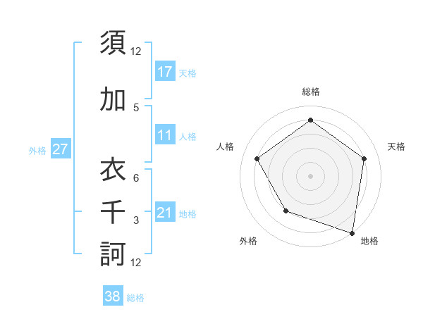 須加 衣千訶さんの総格は38画の4点!
