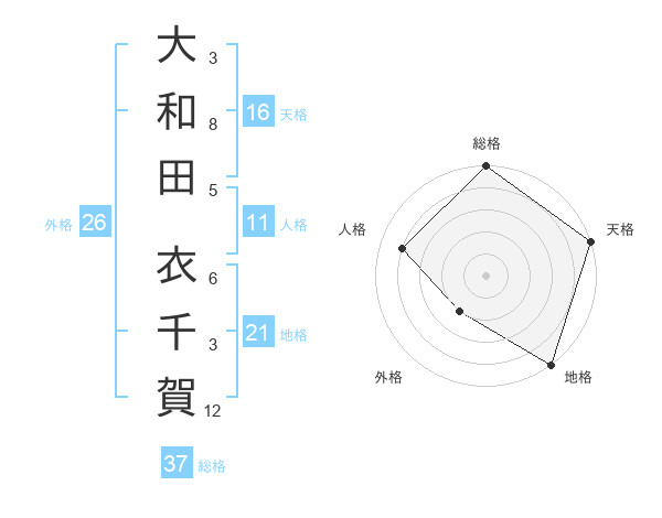 大和田 衣千賀さんを姓名の画数から五運を鑑定