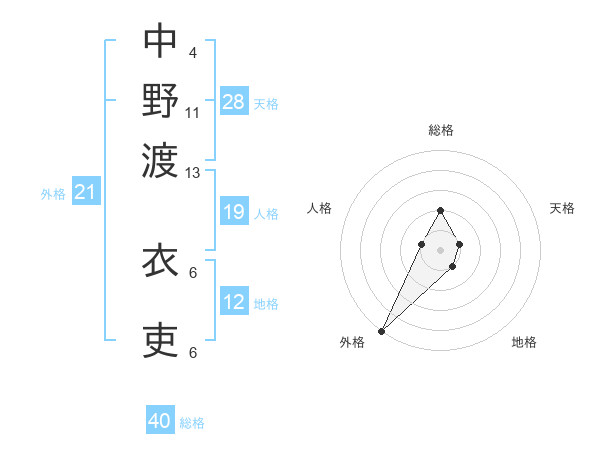 中野渡 衣吏さんを姓名の画数から五運を鑑定