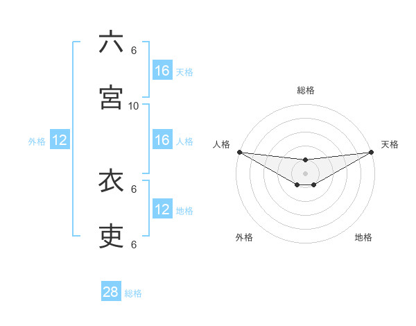 六宮 衣吏さんの天格は16画の5点!