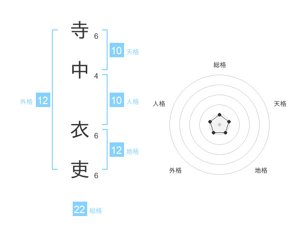 寺中 衣吏さんの総格は22画の1点!