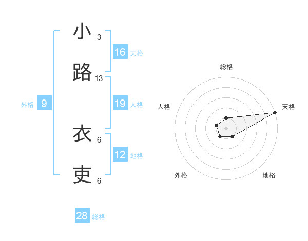 小路 衣吏さんを姓名の画数から五運を鑑定