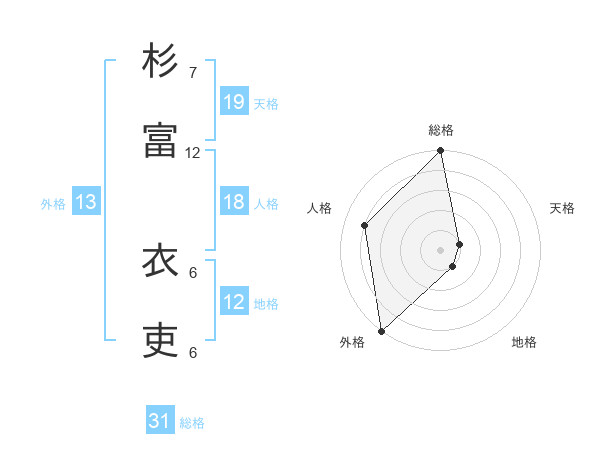杉富 衣吏さんを姓名の画数から五運を鑑定