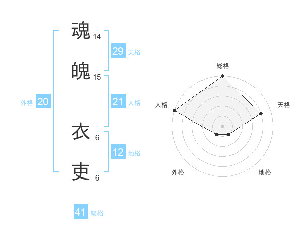 魂魄 衣吏さんの総格は41画の5点!
