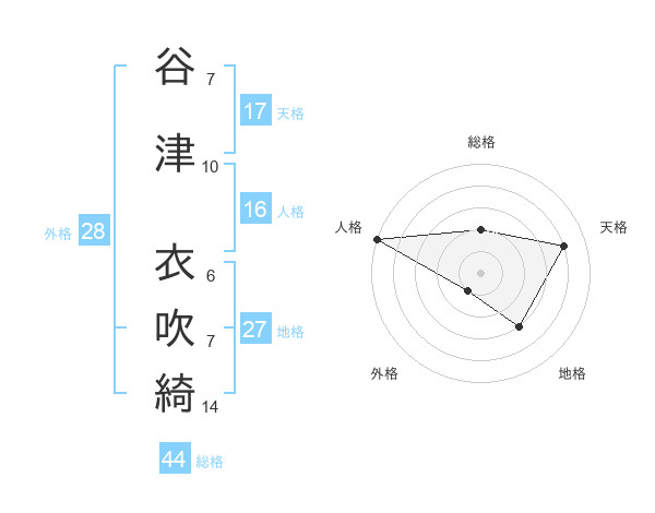 谷津 衣吹綺さんを姓名の画数から五運を鑑定