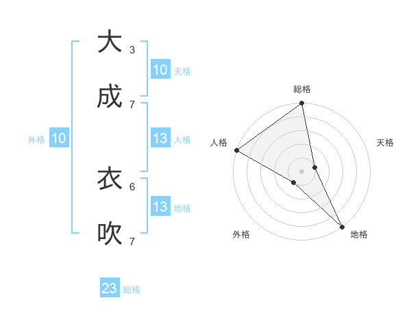 大成 衣吹さんを姓名の画数から五運を鑑定